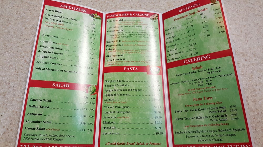 Three cheeses, spinach, or meatballs or ham & pineapple